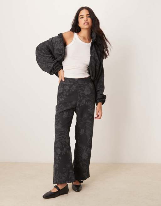 Nike full zip jacquard print track jacket and flared pants in black
