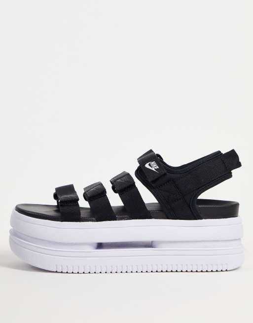 Nike Icon Classic platform sandals in black and white