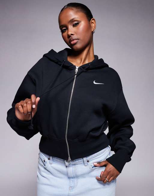 Nike Phoenix Fleece cropped full zip hoodie in black