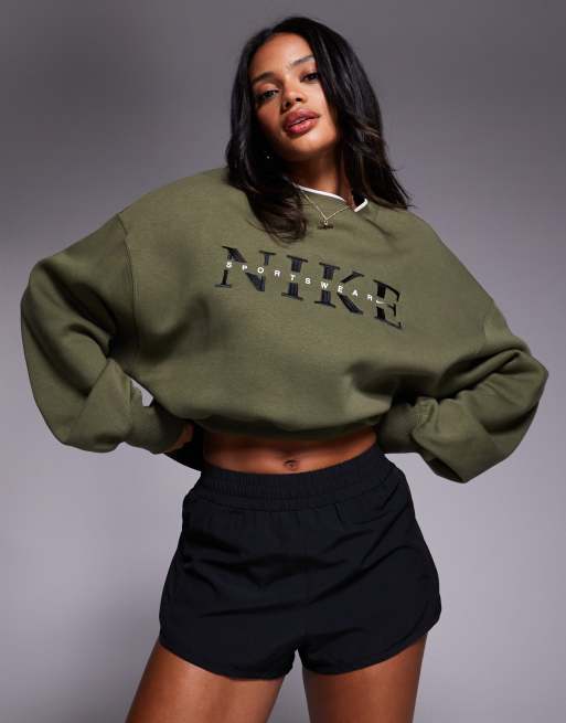 Nike Phoenix Fleece graphic sweatshirt in khaki