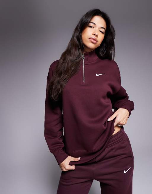 Nike Phoenix Fleece oversized quarter zip sweatshirt in burgundy