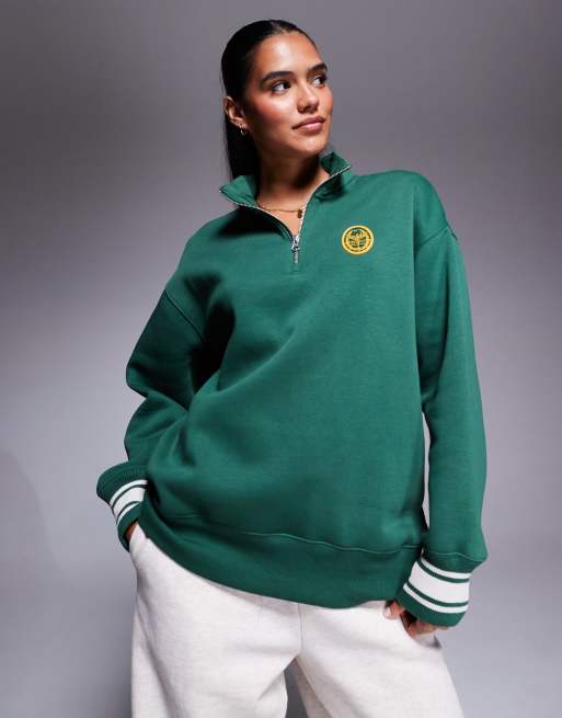 Nike Phoenix Fleece oversized quarter zip sweatshirt in dark green