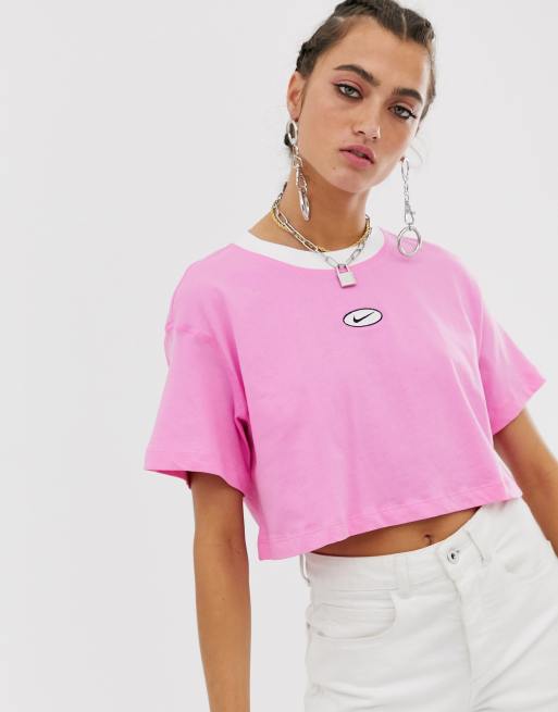 Nike Pink Embroidered Swoosh Crop Top