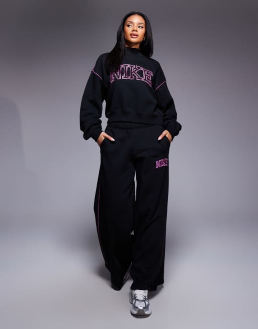Nike retro logo mock neck sweatshirt and straight leg sweatpants set in black and pink