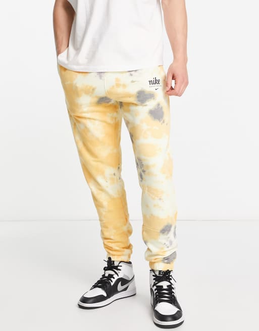 Nike Seasonal Classics acid wash casual fit cuffed fleece sweatpants in cream/multi - CREAM