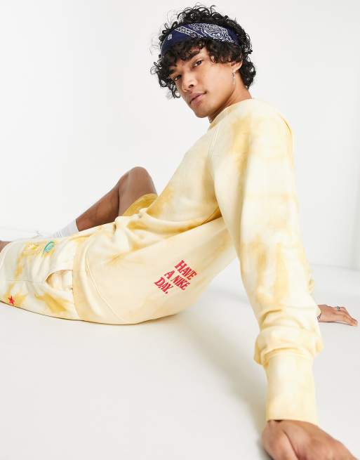 Nike Statement HBR crew neck dye-effect fleece sweatshirt in pale yellow
