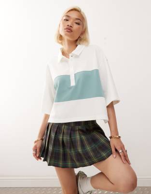 Nike Street oversized polo top in off white and blue