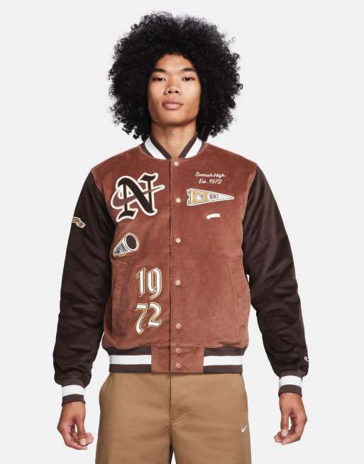 Nike Swoosh corduroy bomber jacket in brown