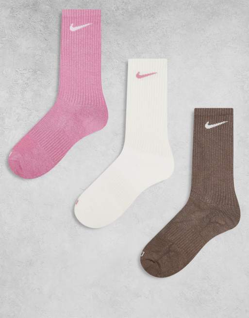 Nike Training Everyday Plus Cushioned 3 pack crew socks in pink and white