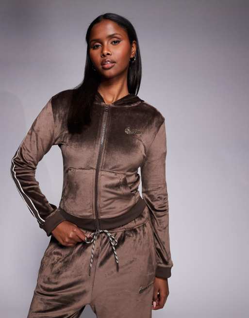 Nike velour full-zip hoodie in brown
