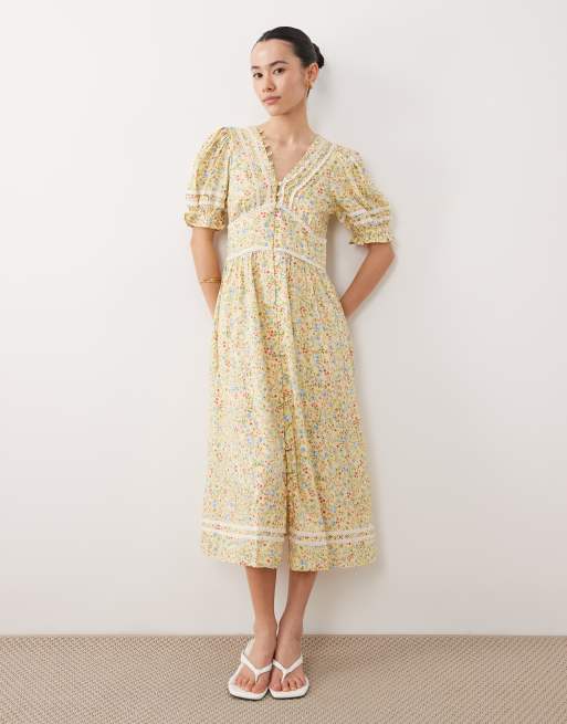 Nobody's Child Petite Saffy midi dress in lemon floral