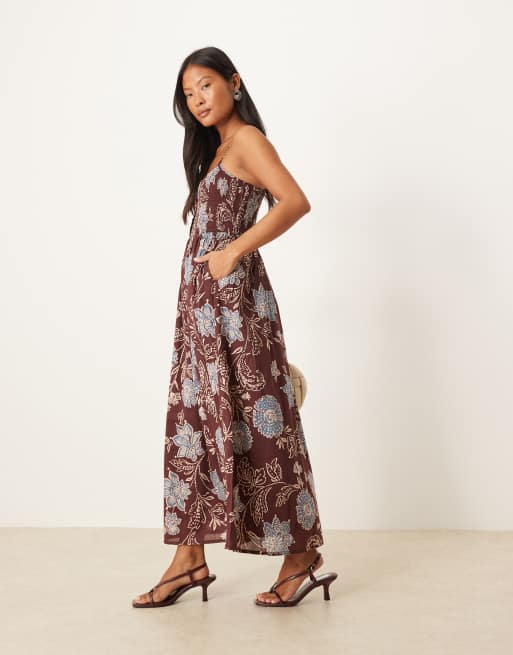 Nobody's Child Petite Tamara strappy midaxi dress in brown floral