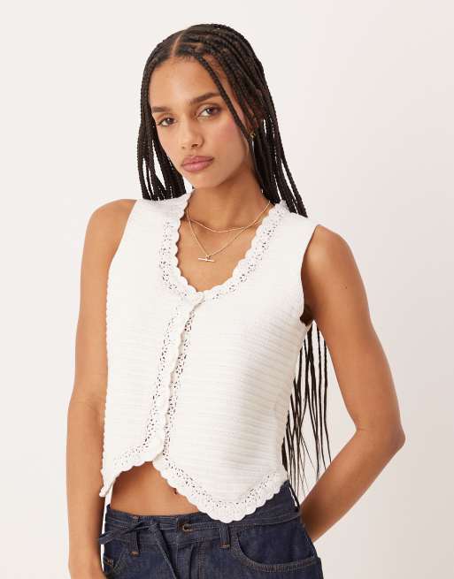 Nobody's Child crochet knit vest in white
