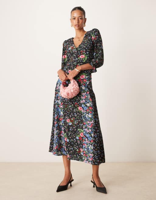 Nobody's Child Dido floral button front blouse in black - part of a set
