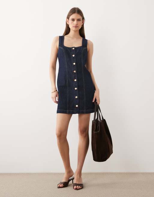 Nobody's Child Harvey square neck fitted denim mini dress in indigo