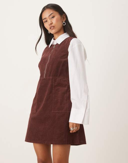 Nobody's Child Homerton a-line corduroy pinafore mini dress in chocolate