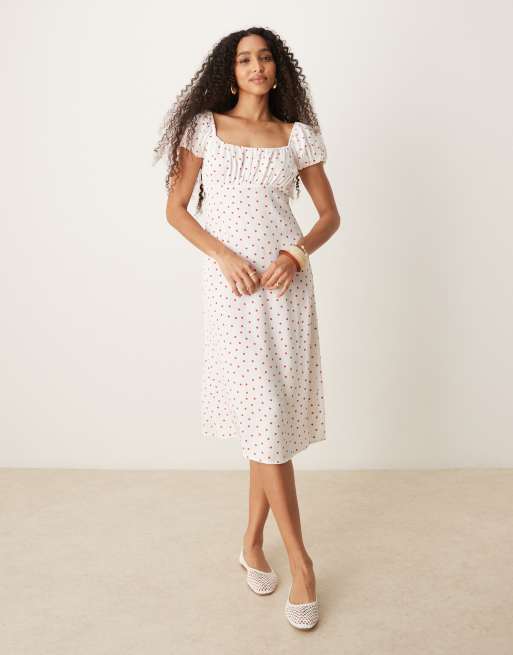 Nobody's Child Raven puff sleeve midi dress in white and red polka dots