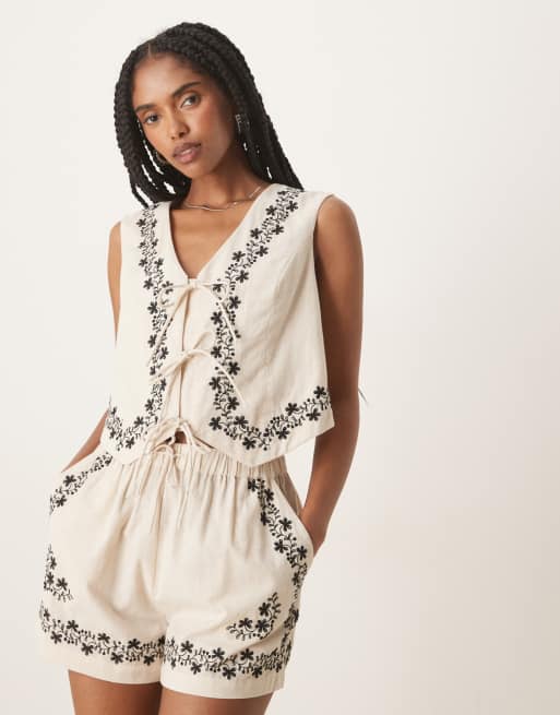 Nobody's Child Rosie embroidered vest in beige - part of a set