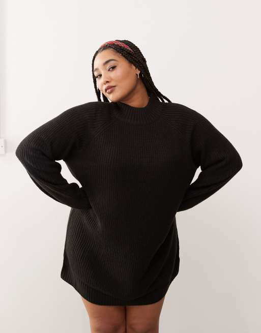Noisy May Curve high neck knit sweater dress in black