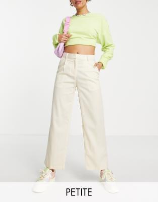 Noisy May Petite tailored wide leg dad pants in cream