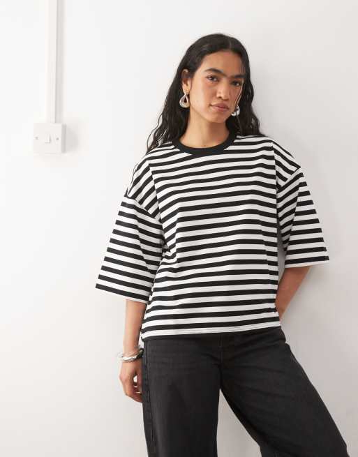 Noisy May boxy tee in black stripe