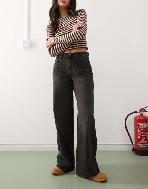 Noisy May Brandy mid rise loose fit jeans in washed black