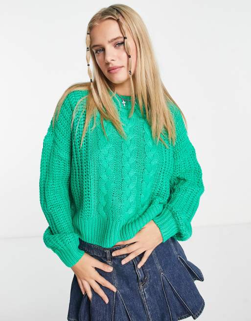 Noisy May cable knit sweater in bright green