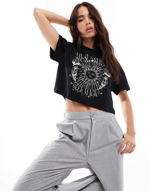 Noisy May oversize cropped T-shirt with sunshine print in black