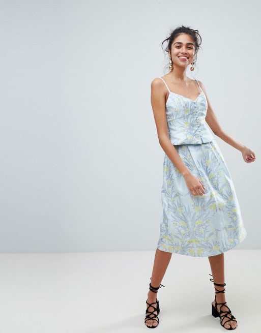 Oasis Floral Print Jacquard Button Down Cami Top & Skirt Two-Piece