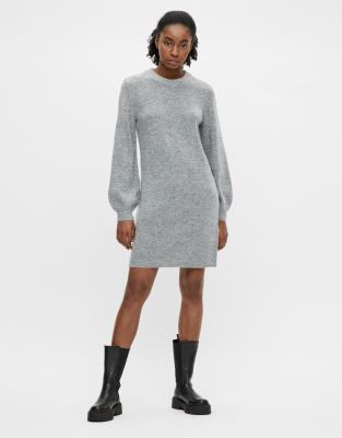 Object knit sweater dress with balloon sleeves in gray