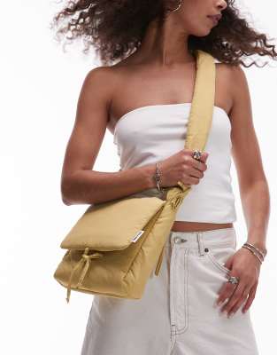 OLEND nina soft nylon crossbody flapover bag with ruched handle in lime