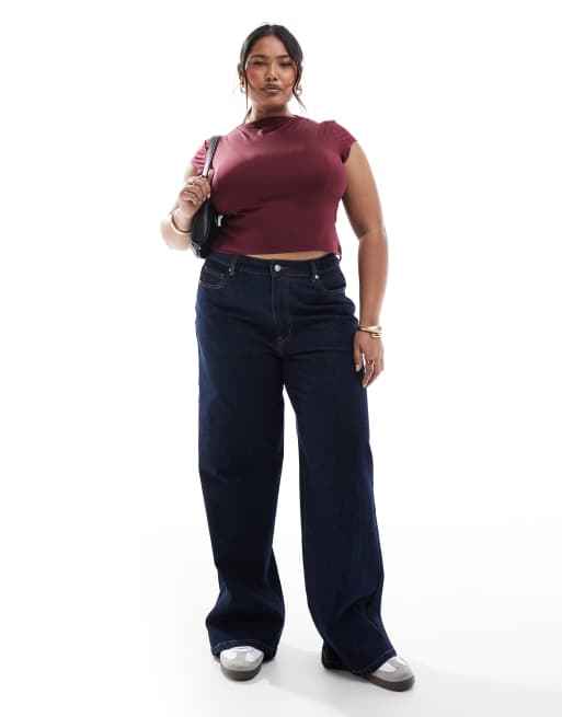 ONLY Curve high rise wide leg jeans in dark blue wash