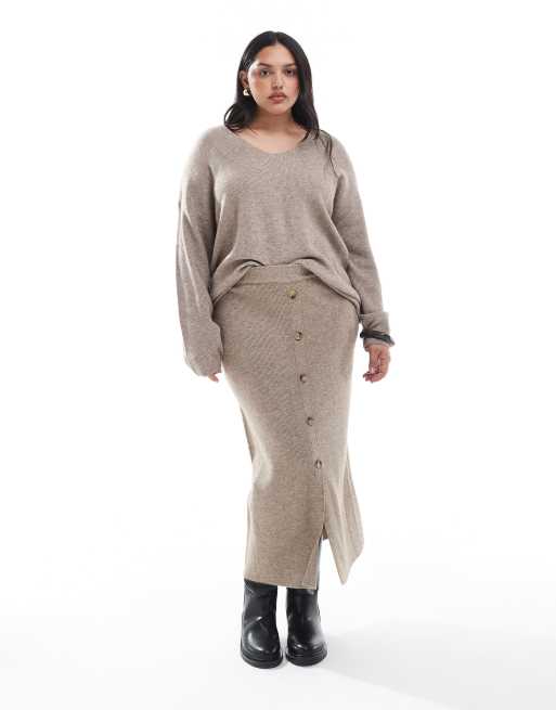 ONLY Curve ribbed midi skirt in beige - part of a set