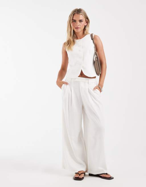 ONLY Petite linen blend tailored vest & linen blend tailored wide leg pants set in white