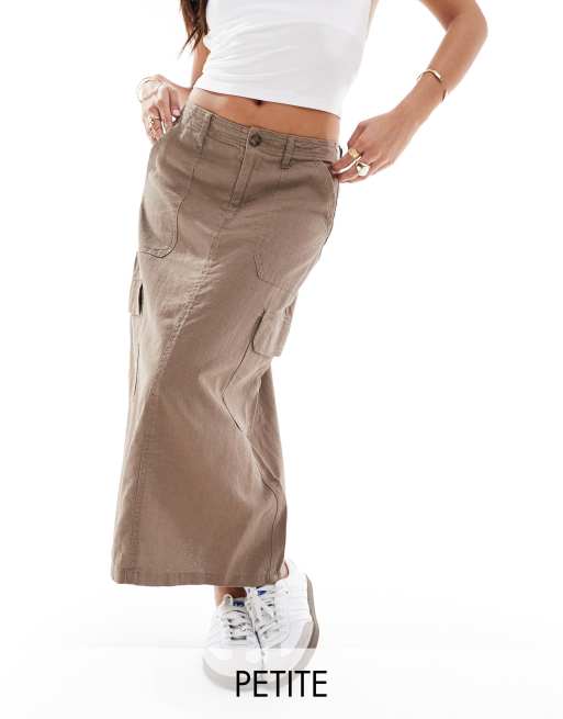ONLY Petite linen mix midi cargo skirt in washed brown