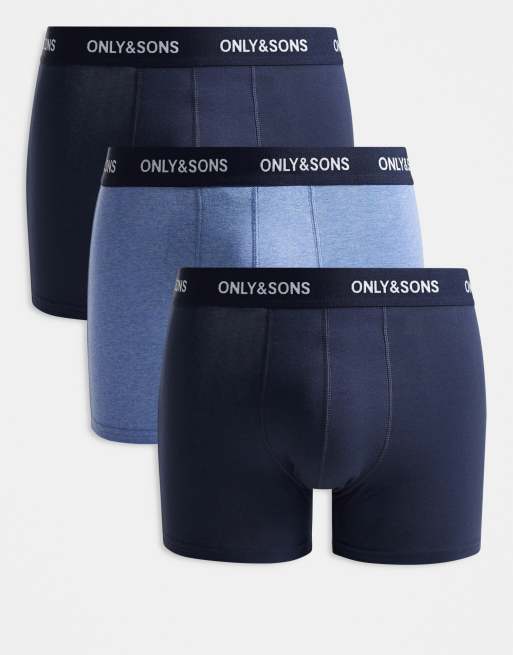 ONLY & SONS 3 pack briefs in blue with black waistband