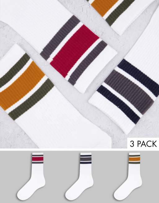 Only & Sons 3 pack crew socks with stripes in white