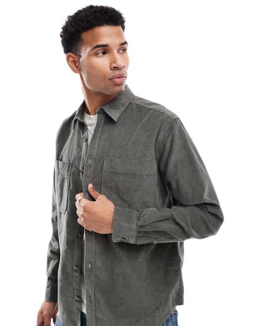 ONLY & SONS cord overshirt in charcoal