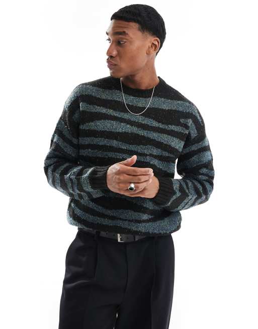 ONLY & SONS crew neck drop shoulder sweater with zebra stripe in black
