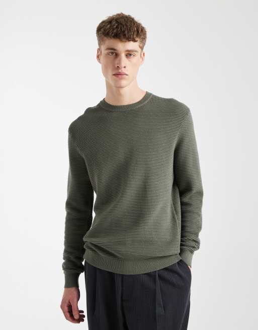 ONLY & SONS crew neck ribbed sweatshirt in green gray