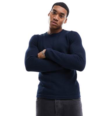 Only & Sons crew neck textured knit sweater in navy