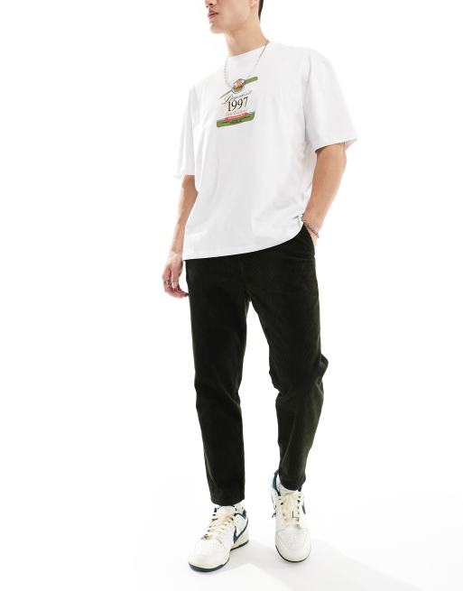 Only & Sons elasticated waist tapered cropped cord pants in dark green
