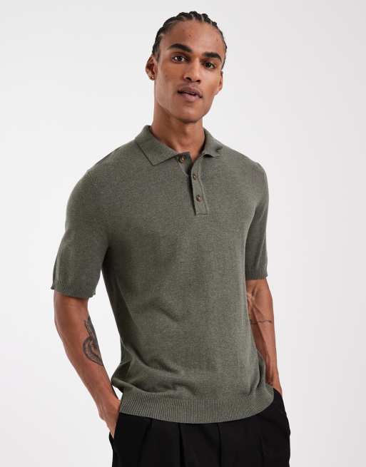 ONLY & SONS knit short sleeve polo shirt in khaki green