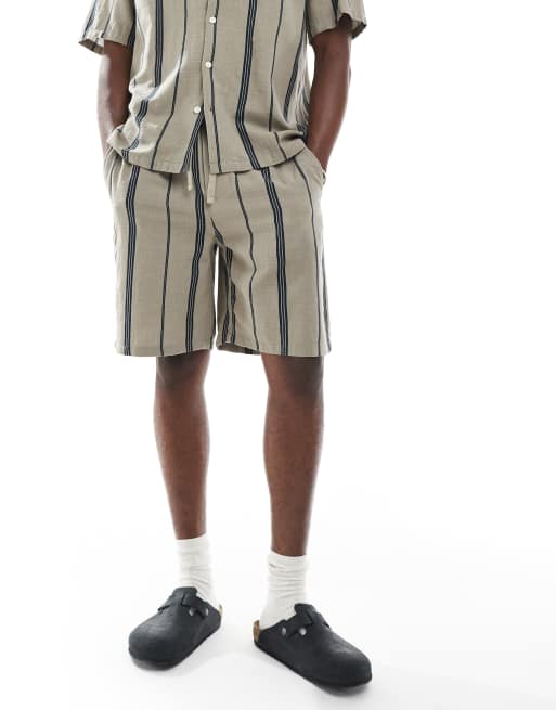 ONLY & SONS linen look short in beige stripe - part of a set