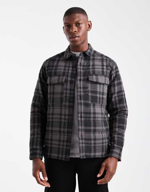ONLY & SONS quilted check jacket in black and gray check