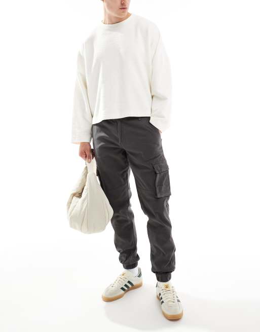 Only & Sons tapered fit cargo with cuffed bottom in gray