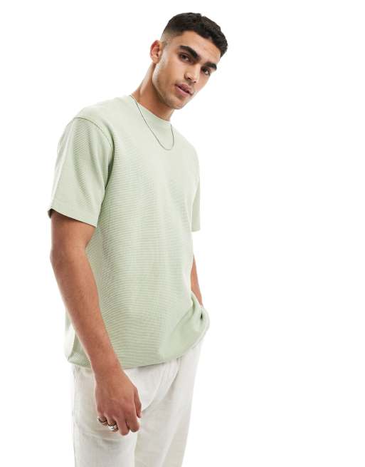 ONLY & SONS waffle knit T-shirt in sage green