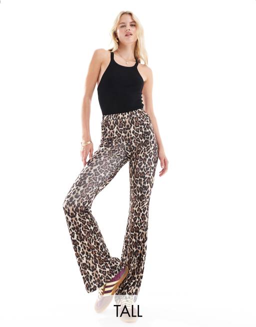 ONLY Tall ribbed flare pants in leopard print