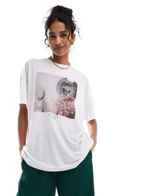 ONLY boxy top with disco ball print in white