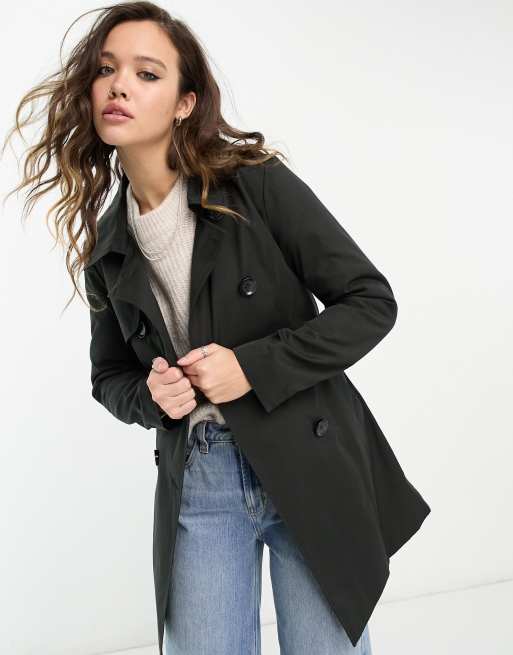 Only button detail short trench coat in black